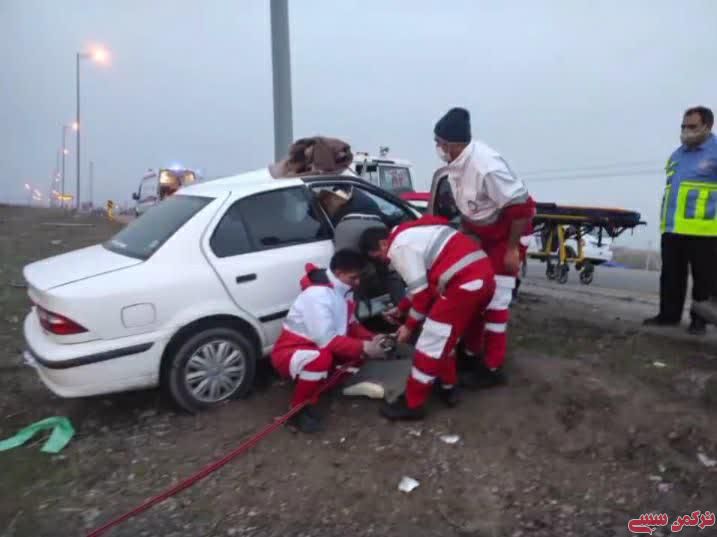 در تصاویر می بینید: خودروی حامل حاج حسین عاصمی ، جوان جهادگر و خیر گمیشانی که در مسیر برگشت از سفر جهادی و خیریه از مناطق محروم خراسان شمالی ، خودروی حامل وی بامداد امروز ( سه شنبه دوم فروردین ۱۴۰۱ ) در نزدیکی قوچان دچار سانحه شد.