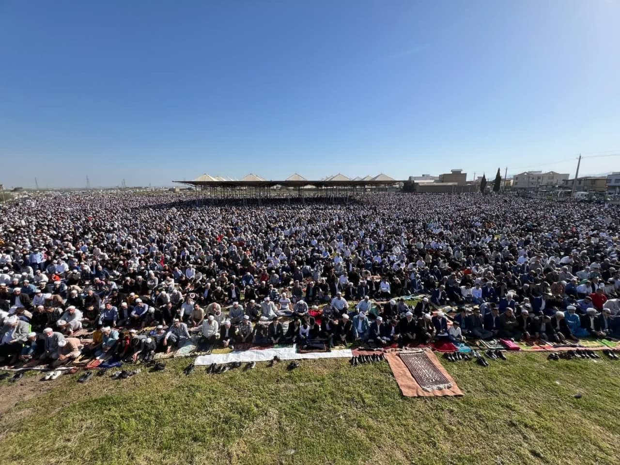ترکمن سسی - نماز عید سعید فطر پس از یک ماه بندگی صبح دوشنبه با حضور گسترده مردم گنبدکاووس در عیدگاه این شهر اقامه شد.