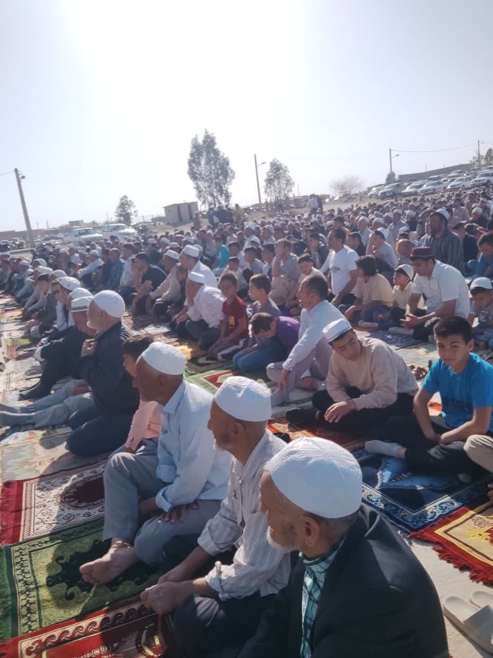 ترکمن سسی - نماز عید سعید فطر پس از یک ماه بندگی صبح دوشنبه با حضور گسترده مردم داشلی برون در شمال گلستان در عیدگاه این شهر اقامه شد.