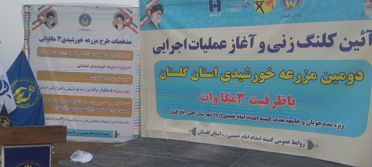 ترکمن سسی - آیین کلنگ زنی و آغاز عملیات اجرایی دومین مزرعه خورشیدی استان گلستان، امروز چهارشنبه با حضور سید مرتضی بختیاری، رییس کمیته امداد امام خمینی(ره)، در روستای کوچک اوستاجیق از توابع علی آباد کتول برگزار شد.
