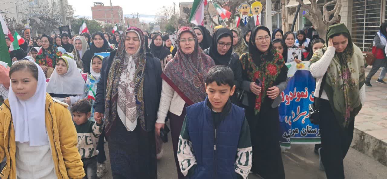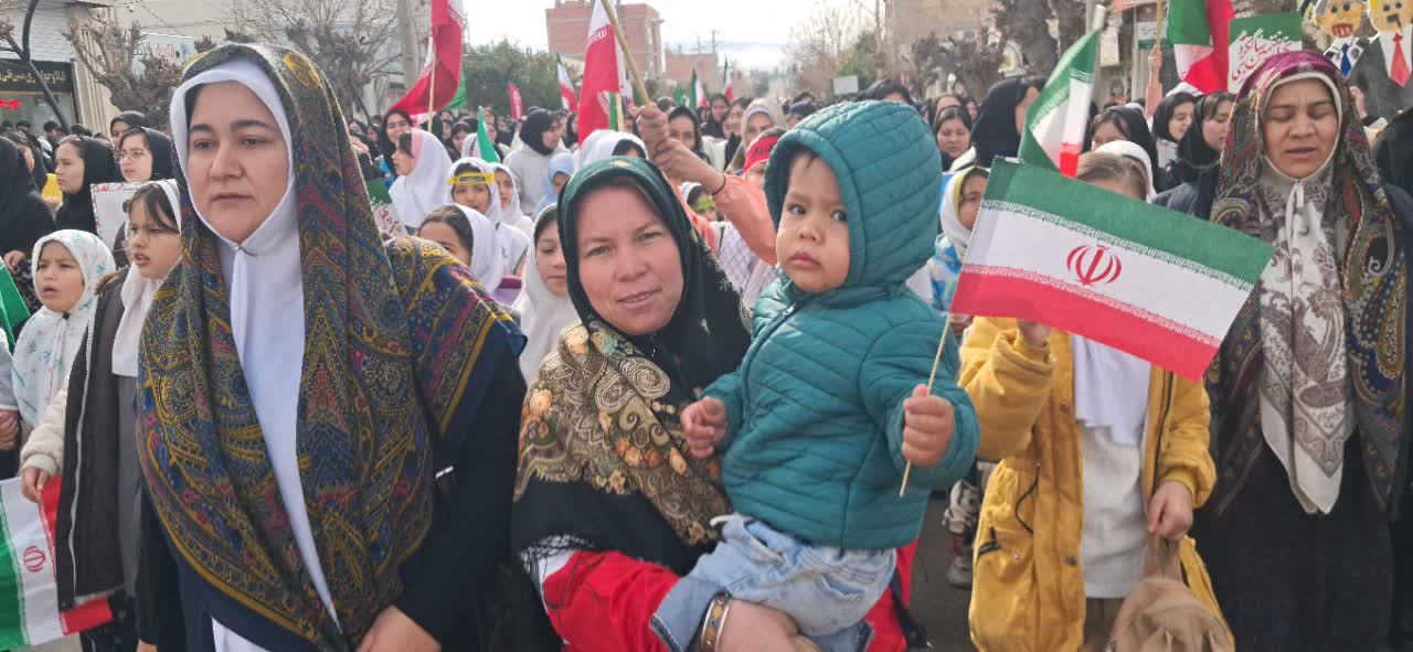 ترکمن سسی - حضور اهالی شهرستان مراوه تپه در شرق گلستان در راهپیمایی ۲۲ بهمن ۱۴۰۴