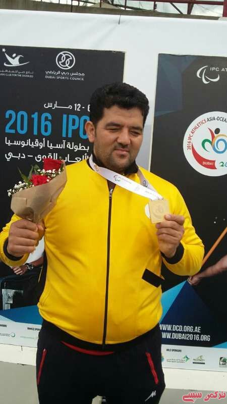 ترکمن سسی-ورزشکار گلستانی حاضر در رقابت های دو و میدانی معلولین و جانبازان آسیا و اقیانوسیه در سومین روز این مسابقات گردن آویر طلا را کسب نمود و رکود قاره کهن را جابجا کرد.