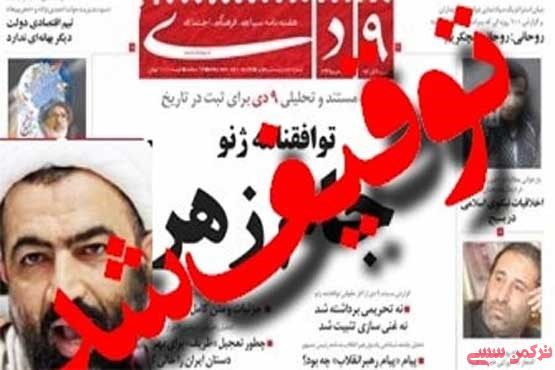 به گزارش خبرنگار ترکمن سسی به نقل معاونت مطبوعاتی وزارت ارشاد، هیات نظارت بر مطبوعات، روند محتوایی هفته نامه ٩دی، بررسی و به دلیل انتشار مطالب مغایر با بند ٨ و ١١ ماده ٦ قانون مطبوعات و بی توجهی به مصوبات شورای عالی امنیت ملی، نشریه مذکور توقیف و پرونده آن به دادگاه ارجاع شد.