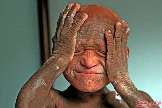 اما ۱۵ روز پس از اینکه از بیمارستان به خانه رفت بدنش شروع کرد به پوسته پوسته و کلفت شدن و کم‌کم فلس‌های سیاهی روی پوستش ایجاد شد.