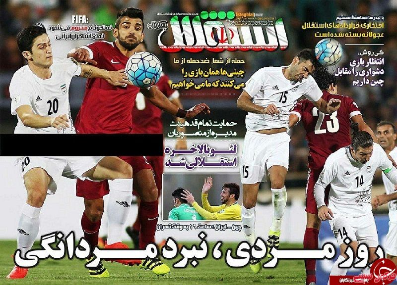به گزارش خبرنگار ترکمن سسی،بازی تیم های ملی ایران و چین از دور مقدماتی جام جهانی 2018 روسیه ساعت 16 امروز برگزار می شود و روزنامه های کشور به طور اختصاصی به این بازی پرداخته اند.