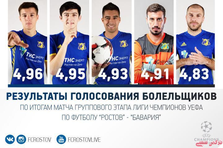 ترکمن سسی-با وجود گلزنی به بایرن مونیخ طرفداران روستوف مهاجم ایرانی خود را دومین بازیکن برتر جدال با باواریایی ها انتخاب کردند.