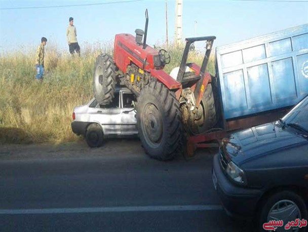 ترکمن سسی - صبح امروز یک دستگاه خودروی پراید با تراکتور در مسیر روستای صوفیان برخورد کرد.