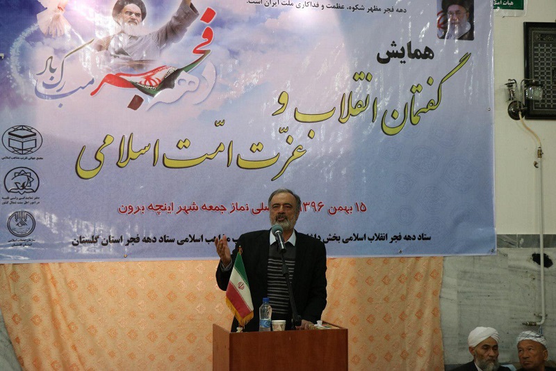 ترکمن سسی- به مناسبت ایام الله دهه مبارک فجر قبل از ظهر امروز یکشنبه ۱۵ بهمن ماه ۹۶ ، همایش گفتمان انقلاب و عزت امت اسلامی در مصلی شهر مرزی اینچه برون برگزار شد.