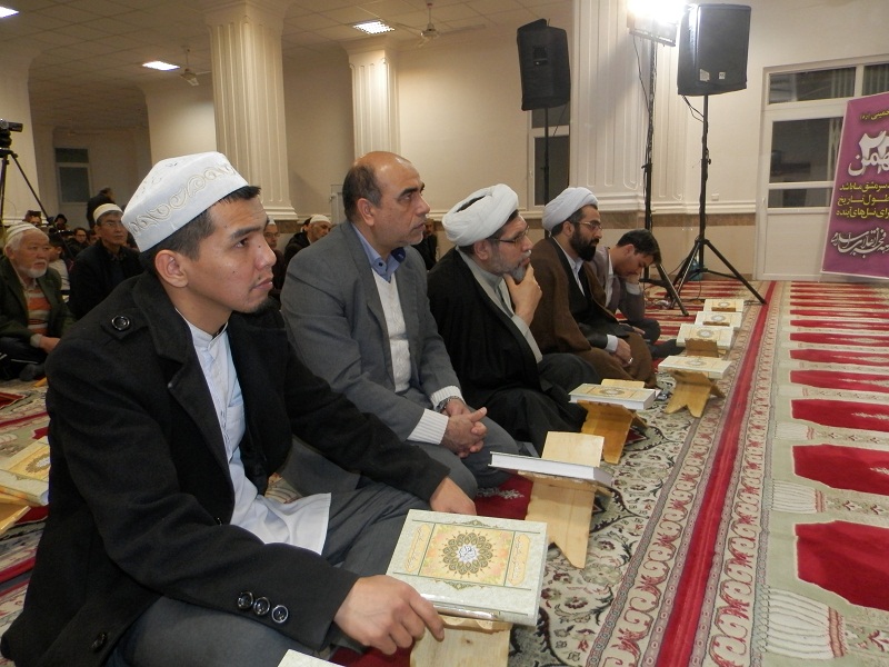 ترکمن سسی- با حضور تعدادی از قاریان برجسته و اقشار مختلف مردمی شامگاه یکشنبه 15 بهمن ماه 96 آئین معنوی عطر قرآن در فجر انقلاب در مسجد اهل سنت امام اعظم ابوحنیفه در قزاق محله گرگان برگزار و در پایان از خانواده معظم شهید صفرعلی عرقبای تجلیل شد.