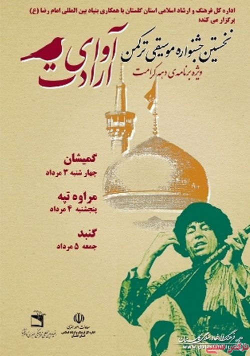 گفتنی است جشنواره موسیقی ترکمن آوای ارادت از سوی فرهنگ و ارشاد اسلامی و با حمایت بنیاد بین المللی فرهنگی و هنری امام رضا(ع) برگزار می شود،