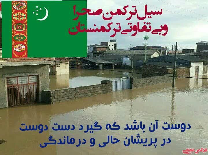 ابراز همدردی و کمک های بی دریغ مردم شهرهای ایران اسلامی از آذربایجان ، کردستان ، سیستان بلوچستان ، مازندران و ... نیز انعکاس اخبار این سیل و همدردی ها در خارج مرزها ما ترکمن ها و هم استانی های گلستانی را شرمنده کرده است و حتی در آخرین خبر دیشب چند نفر از نیروهای مردمی از جمله یک جوان گرگانی که برای ایجاد سیل بند تلاش می کردند در حادثه واژگونی قایق جان باختند ، ولی در این میان رئیس جمهور همسایه شمالی ما یعنی کشور ترکمنستان متاسفانه بی تفاوت از کنار این رویداد بزرگ گذشته و آن گونه که انتظار می رفت واکنش قابل ملاحظه ای نشان نداده اند.