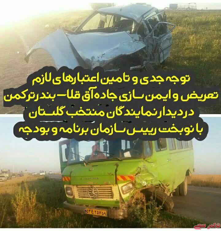 گفتنی است جاده آق قلا - بندرترکمن از محورهای پرتردد در منطقه ترکمن صحراست و بدلیل عرض کم جاده و حجم بالای تردد و بخشی هم به دلیل فرهنگ ترافیکی در سال های اخیر شاهد اتفاقات جاده ای بسیاری بوده است به طوری که این جاده در میان مردم منطقه و فعالان فضای مجازی با عنوان خطرناک ترین جاده منطقه و جاده مرگ شناخته می شود.
