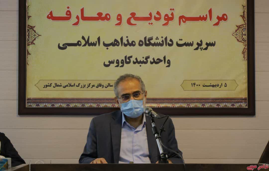 به گزارش رابط خبری دفتر نمایندگی ولی فقیه در امور اهل سنت استان گلستان، آئین تودیع و معارفه سرپرست دانشگاه مذاهب اسلامی واحد گنبدکاووس با حضور دکتر سید محمد حسینی رئیس دانشگاه مذاهب کشور، علمای تسنن و تشیع، مسئولین و دانشجویان دانشگاه مذاهب سلامی واحد گنبد کاووس در سالن وفاق دفتر نمایندگی ولی فقیه در امور اهل سنت استان گلستان در گرگان برگزار شد.