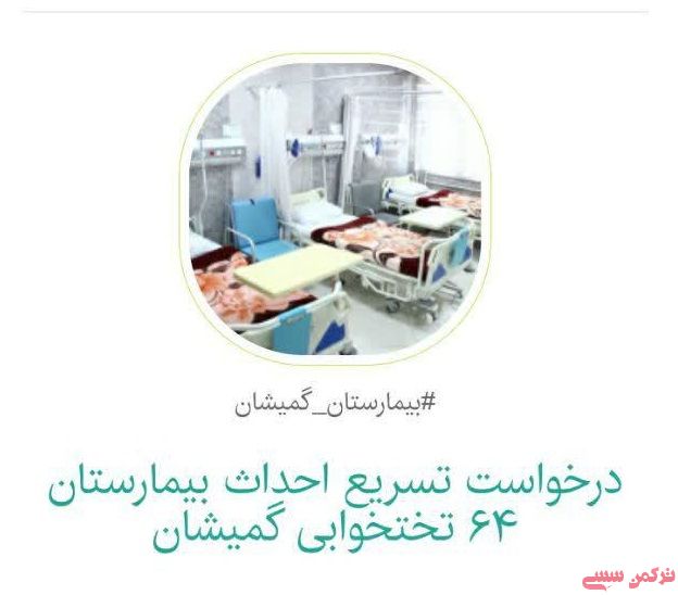 گمیشان : ترکمن سسی - درخواست تسریع احداث بیمارستان 64 تحت خوابی گمیشان عنوان یک کاراز مجازی است که اخیرا راه اندازی شده است.