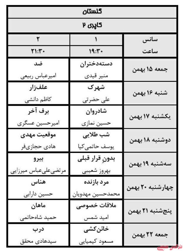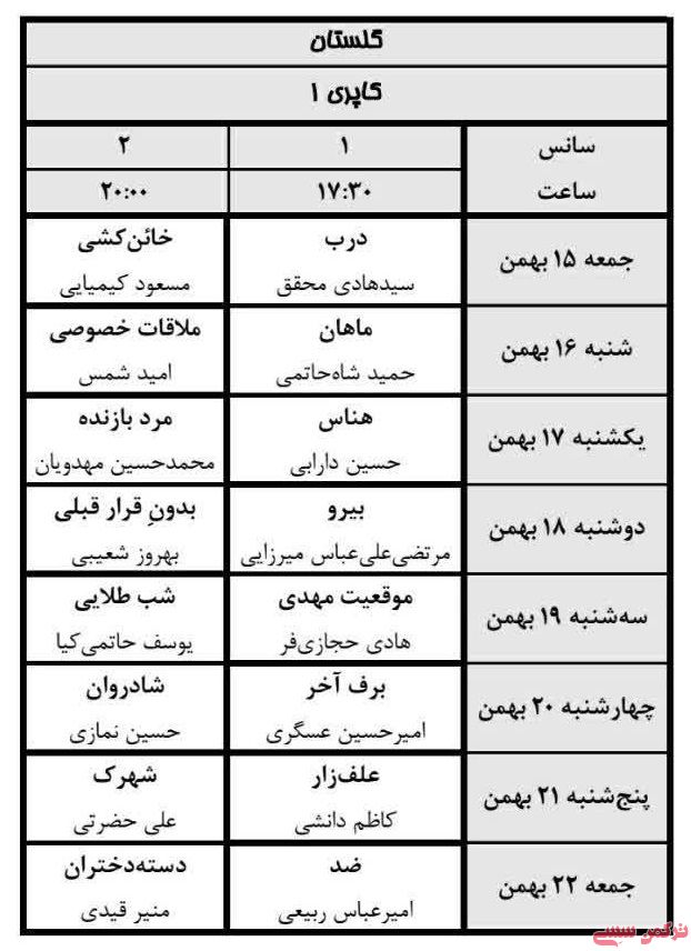 وی با اشاره به اینکه ظرفیت سینماهای میزبان چهلمین جشنواره فیلم فجر در استان گلستان باتوجه به وضعیت کرونایی؛ منوط به مصوبات ستاد کرونا خواهد بود، گفت: در حال حاضر برای اکران فیلم ها 2 سانس 17 و 19.30 برای سینمای عصر جدید و 17.30 و 20 سالن یک کاپری و 19.30 و 21.30 برای سالن شماره دو پردیس سینمایی کاپری پیش بینی و برنامه ریزی شده است.