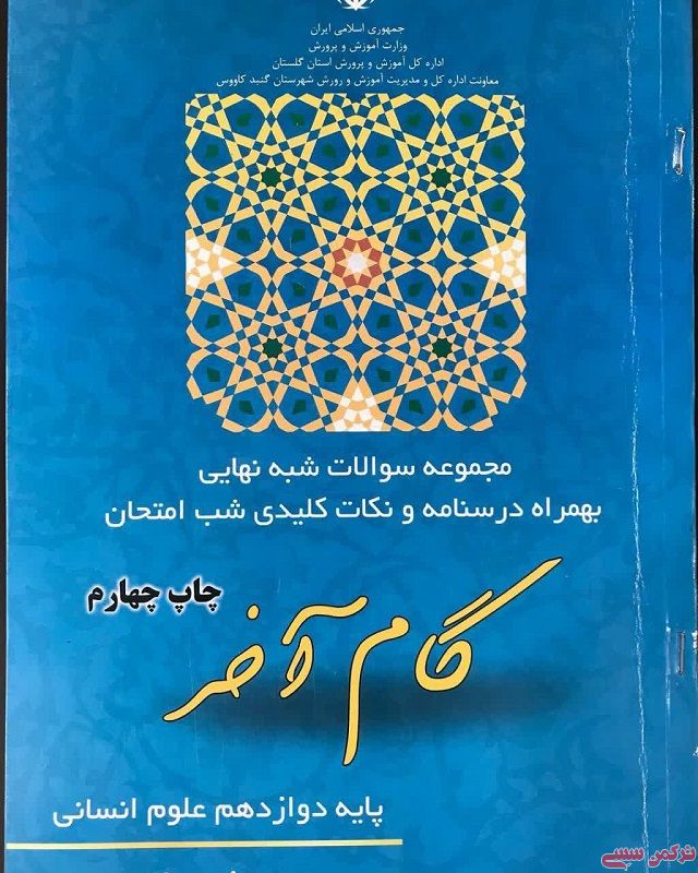 ترکمن سسی - گام آخر، عنوان مجموعه سوالات شبه نهایی به همراه درسنامه و نکات کلیدی برای امتحانات نهایی تمامی دروس در رشته های مختلف پایه دوازدهم متوسطه است.