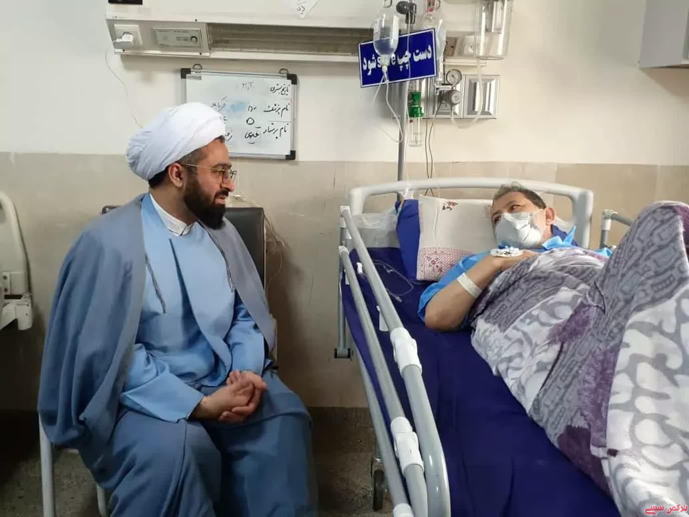 گرگان : ترکمن سسی - حجت الاسلام نورعلی دیلم رئیس مرکز اسلامی گلستان عصر امروز با حضور در بیمارستان ۵ آذر گرگان از عاشر بردی اتک پور جانباز و آزاده دوران دفاع مقدس و عکاس و خبرنگار ترکمن عیادت و برای سلامتی وی دعا کرد.