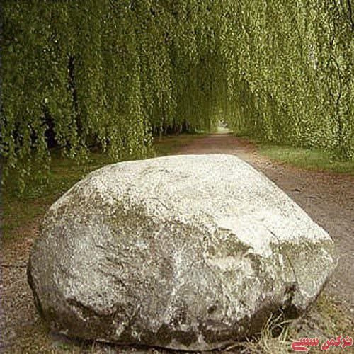 بارهایش را زمین گذاشت و با هر زحمتی بود تخته سنگ را از وسط جاده برداشت و آن را کناری قرار داد.