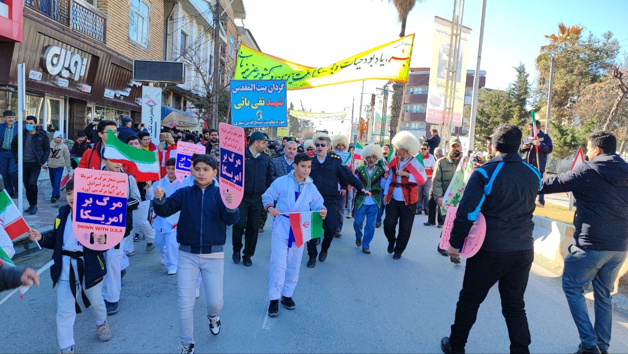 ترکمن سسی - راهپیمایی ۲۲ بهمن در بندرترکمن ، همزمان با سراسر کشور صبح امروز شنبه با حضور گسترده اقشار مختلف مردمی از میدان مختوم قلی فراغی تا خیابان شهید کاسب برگزار شد.
