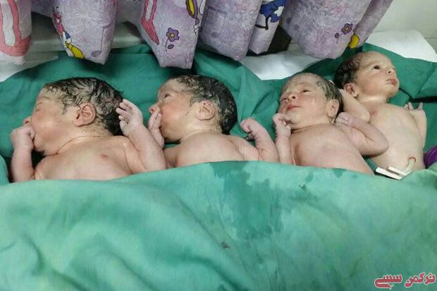 به گزارش مهر؛ خانم سمیه قجقی مادر اهل روستای کملر از توابع شهرستان گمیشان در دومین زایمان خود صاحب چهار دختر شد که یکی از آن‌ها با وزن یک کیلو و ۲۰۰ گرم و سه نفر دیگر با وزن یک کیلو و ۷۰۰ گرم به دنیا آمده‌اند.