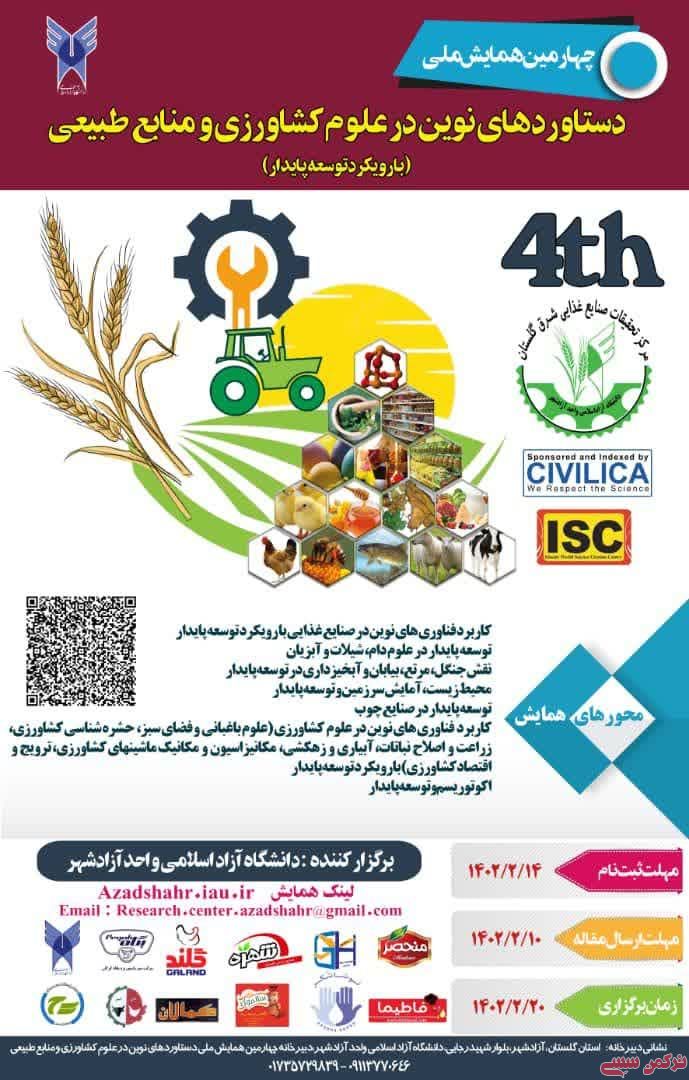 ترکمن سسی - چهارمین  همایش ملی دستاوردهای نوین در علوم کشاورزی و منابع طبیعی به میزبانی گلستان در دانشگاه آزاد اسلامی واحد آزاد شهر برگزار می شود.