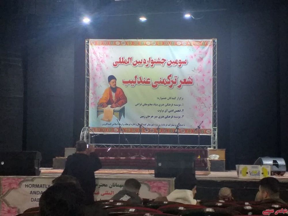 گنبدکاووس - ترکمن سسی - اختتامیه سومین جشنواره بین المللی شعر ترکمنی عندلیب هم اکنون عصر جمعه ۱۰ اسفند ۱۴۰۳ با حضور دوستداران شعر و ادب ترکمنی و با اجرای برنامه های متنوع فرهنگی در سالن اداره فرهنگ و ارشاد اسلامی گنبدکاووس در حال برگزاری است.