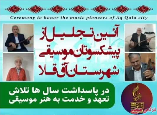 ترکمن سسی - چهار پیشکسوت عرصه موسیقی سنتی شهرستان آق قلا به همت انجمن موسیقی و اداره کل فرهنگی و ارشاد اسلامی گلستان، طی آیینی تجلیل می شوند.