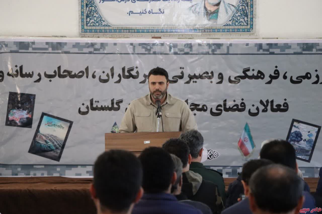 وی، همچنین با اشاره به ظرفیتهای تاریخی و طبیعی استان گلستان، از جمله جنگلهای هیرکانی و آثار تاریخی منطقه، بر ضرورت تقویت وحدت و حفظ هویت تمدنی کشور تأکید کرد و گفت: تهدیدهای بیرونی در برابر ظرفیتهای درونی کشور ناچیز مینماید. بنابراین تقویت روحیه ملی و همافزایی همه گروهها ضروری است.