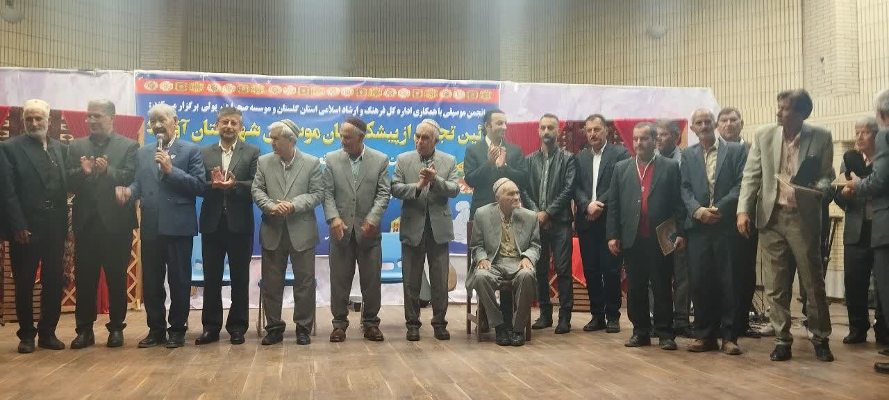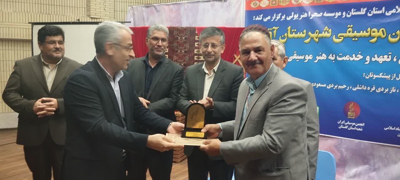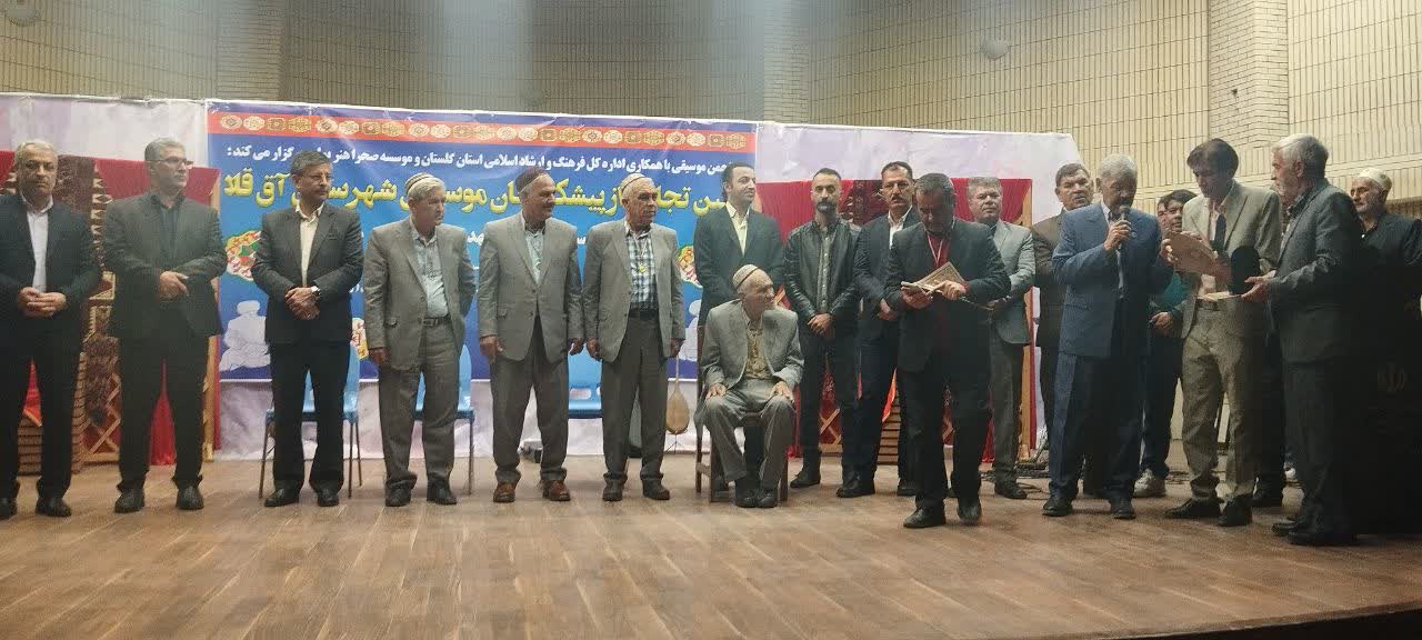 ترکمن سسی - آیین تجلیل از چهار پیشکسوت موسیقی سنتی شهرستان آق قلا : آنه اراز گری، خدای وردی اسماعیل زاده (طریک) ، نازبردی قره داشلی و رحیم بردی مسعودی (رجب کسلخه)، عصر سه شنبه در سالن اداره فرهنگ و ارشاد اسلامی شهرستان آق قلا برگزار شد.