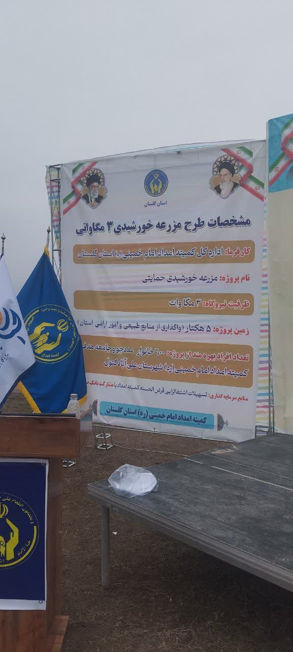ترکمن سسی - آیین کلنگ زنی و آغاز عملیات اجرایی دومین مزرعه خورشیدی استان گلستان، امروز چهارشنبه با حضور سید مرتضی بختیاری، رییس کمیته امداد امام خمینی(ره)، در روستای کوچک اوستاجیق از توابع علی آباد کتول برگزار شد.