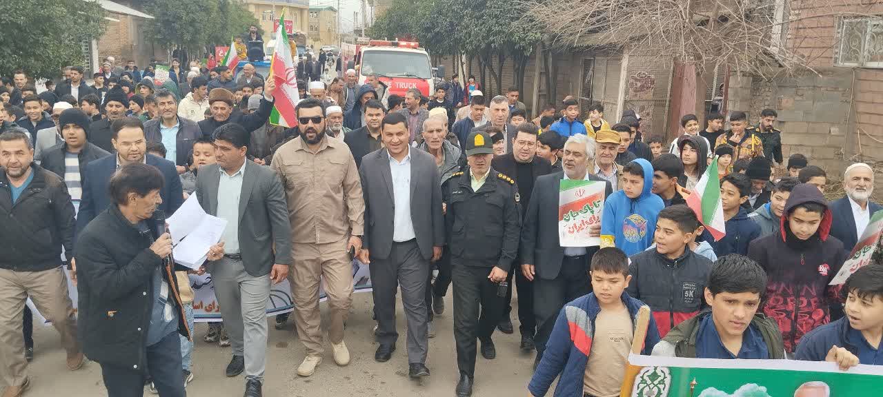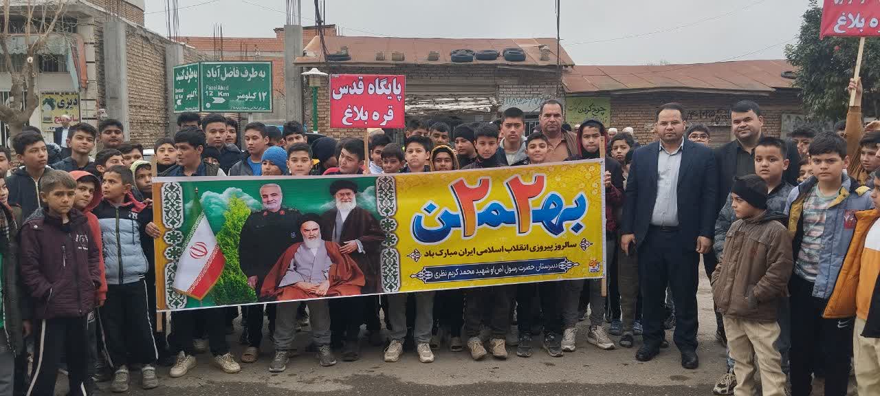 ترکمن سسی - حضور اهالی روستای قره بلاغ بخش کمالان شهرستان علی آبادکتول در راهپیمایی ۲۲ بهمن ۱۴۰۴