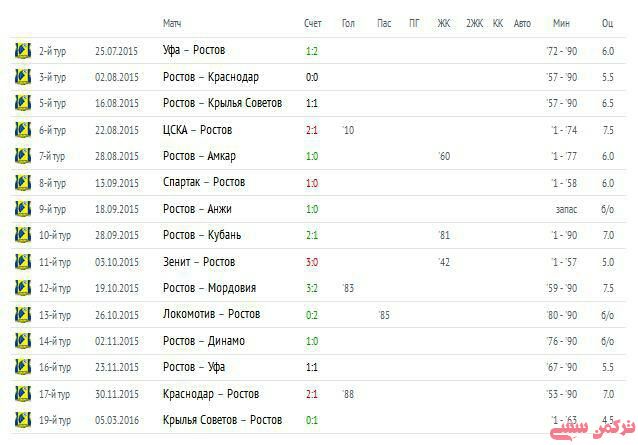در تصویر تمام نمره های دریافتی سردار آزمون در خبرگزاری چمپیونات روسیه دیده می شود که بهترین نمره وی در هفته دوازدهم لیگ برتر روسیه برابر تیم موردویا سارانسک با نمره 7.5 بود.