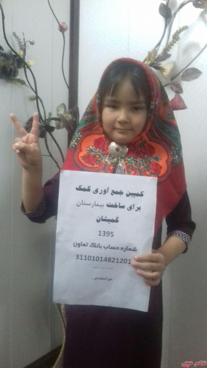 با تلاش شبانه روزی شورای خیرین سلامت شهرستان گمیشان و هماهنگی امام جمعه محترم کمیش دپه جهت جمع آوری کمکهای مردمی جهت خرید زمین بیمارستان ،حسابی مشترک بنام سه نفر آقایان قربان محمد شاه نظری، عطا آخوند کمالی کم و محمد صفا قرنجیکی در بانک تعاون بازشده است تا به حمد و قوه الهی و حمایت دلسوزان شهرستان زمینه های اولیه برای تهیه زمین مناسب برای ایجاد بیمارستان و ادامه روند ساخت آن هر چه زودتر صورت پذیرد.