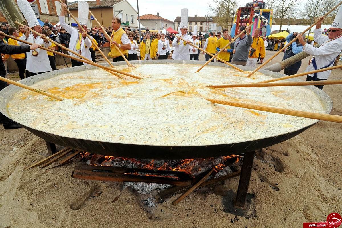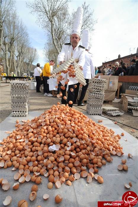 ترکمن سسی-به رسم هرسال مردم بسیر فرانسه در میدان اصلی این شهر جمع شدند تا املتی با 15000 تخم مرغ درست کنند.