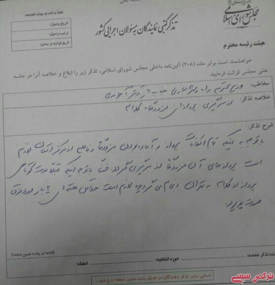 و با در نظر گرفتن اهمیت از سرگیری پروازهای کلاله ، در طی درخواست های مکرر از وزیر محترم راه جناب آقای آخوندی منتظر این جریان هستیم تا اقداماتی سریع ، محتمل و محکم که در شان مردم شرق گلستان و شهرستان کلاله باشد ، صورت پذیرد.»