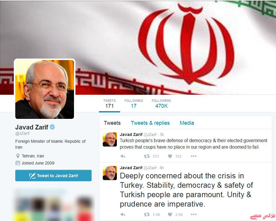 ترکمن سسی-محمدجواد ظریف،وزیر امور خارجه کشور در توییتر خود به کودتای ترکیه واکنش نشان داد.