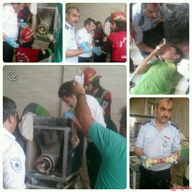 این نوجوان هنگامی که دستگاه مشغول برش خمیرها برای نان لواش بود،بر اثر سهل انگاری دست خویش را در آن فرو برد که باعث قطع دست وی شد.