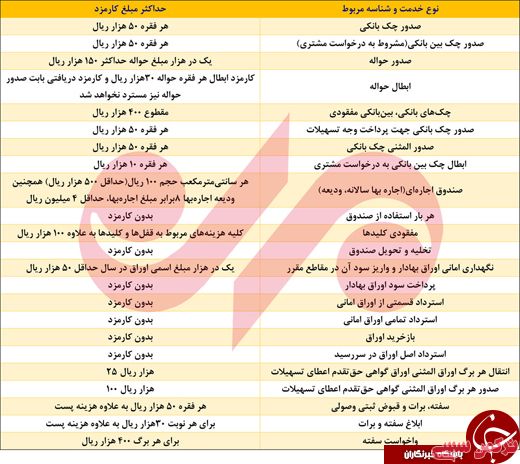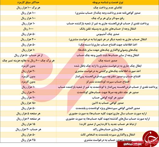 در اینجا فهرست کامل عمده‌ترین نرخ‌های جدید کارمزدهای بانکی را مشاهده می‌کنید: