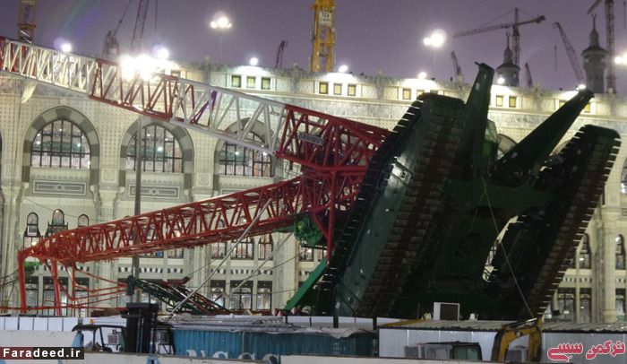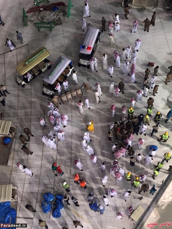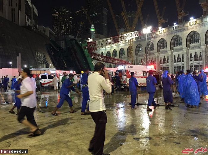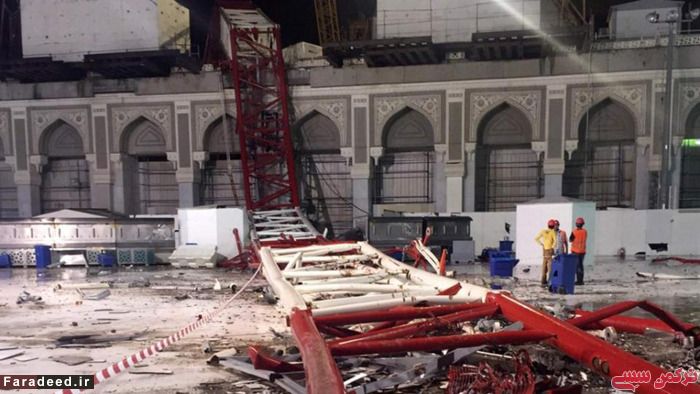 طوفان و بارش شدید باران باعث سقوط یک جرثقیل در داخل محوطه مسجدالحرام و کشته شدن 107 زائر شد.
