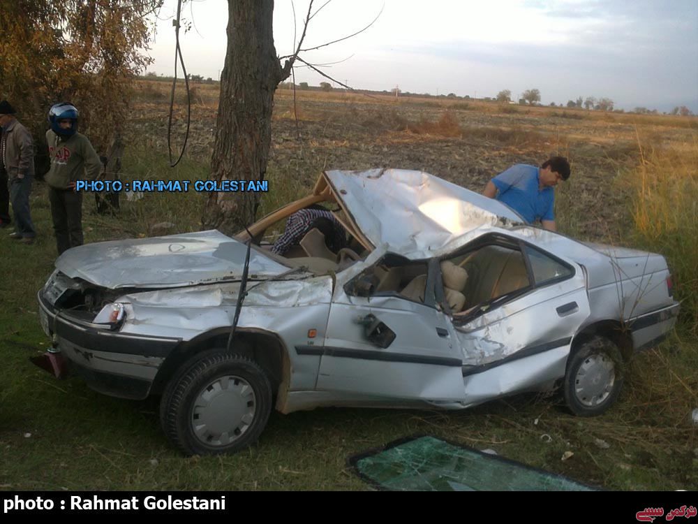 به گفته شاعدان عینی خودروی پژو 405 به دلیل سرعت بالا از جاده منحرف شده و به درخت کنار جاده برخورد می کند.