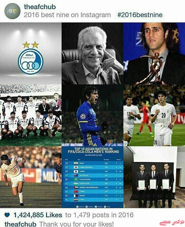 ترکمن سسی-هر 9 پست برتر اینستاگرام رسمی کنفدراسیون فوتبال آسیا در سال 2016 از لحاظ لایک مربوط به پست هایی در رابطه با فوتبال ایران است.