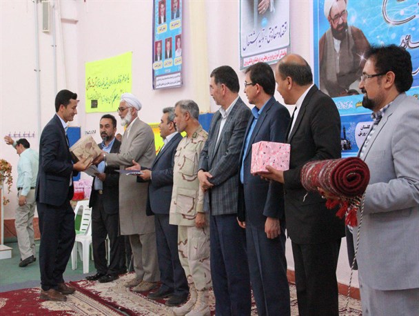 در این آیین به 7 نفر از معلمان نمونه شهرستانی و 8 نفر برگزیدگان طرح جابربن حیان, سه نفر سرپرست و مربی تیم ورزشی دو میداین و دو نفر دانش آموز که در این میادین موفق به کسب مدال طلا شده بودند و همچنین گروه سرود جوایز و لوح تقدیر به رسم یادبود به آنان داده شد .