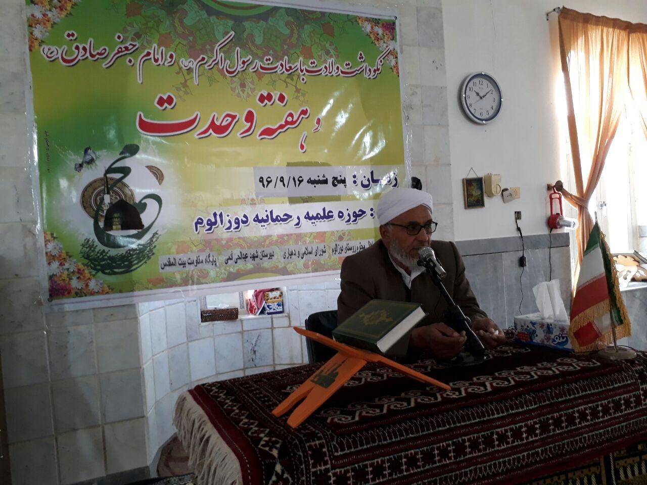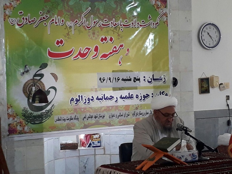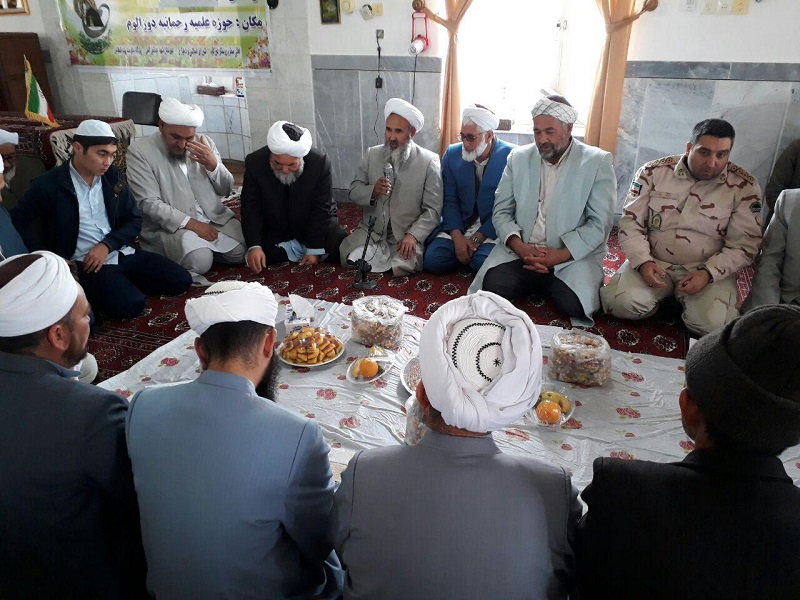 ترکمن سسی –مراسم مردمی بزرگداشت سالروز میلاد حضرت ختمی مرتبت محمد مصطفی (ص) و هفته وحدت ، قبل از ظهر امروز پنج شنبه ۱۶ آذرماه در حوزه علمیه رحمانیه روستای مرزی دوزالوم به همت اهالی منطقه برگزار شد.