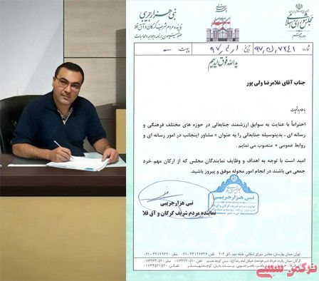 ترکمن سسی- نماینده مردم گرگان و آق قلا در مجلس شورای اسلامی، با صدور حکمی «غلامرضا ولی پور»؛ روزنامه نگار ترکمن را به سمت مشاور رسانه ای خود منصوب کرد.