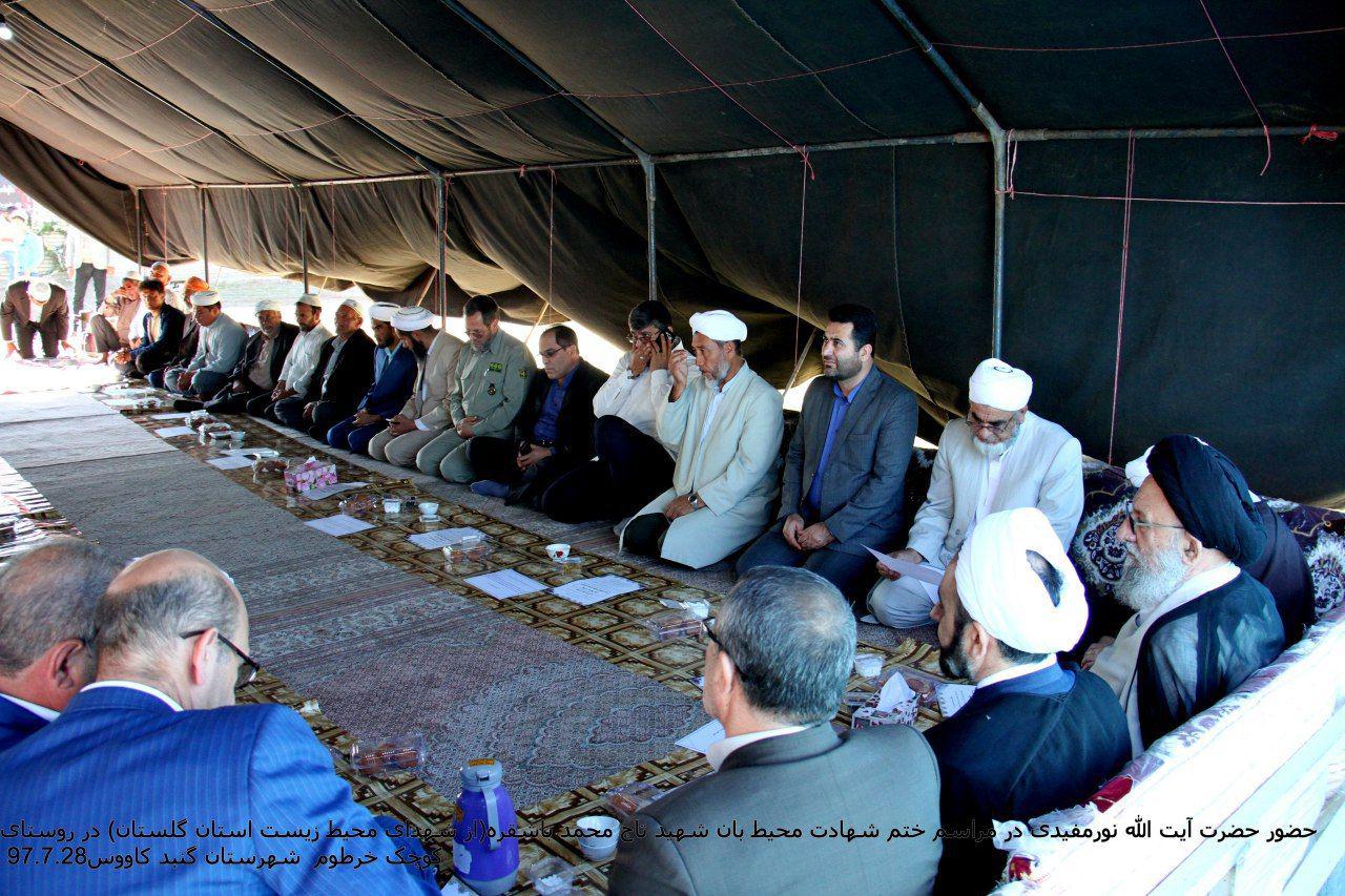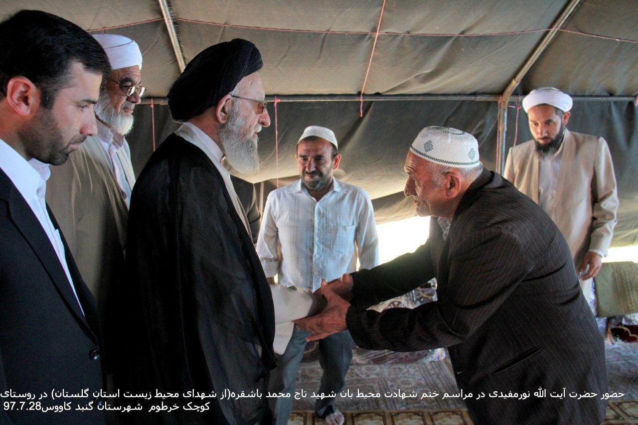 به گزارش ترکمن سسی؛ آیت الله سیدکاظم نورمفیدی در حاشیه این مراسم و در گفتگو با خبرنگار صدا و سیما  اظهار کرد: شنیدن شهادت این محیط بان عزیز مصیبت غمباری نه فقط برای خانواده شهید و مردم  گلستان بلکه برای همه ملت ایران  همراه با حزن و اندوه بود، چرا که  افرادی از خدا بی خبر انسان پاکی را که تازه از سفر معنوی حج برگشته بود را در راه دفاع از ارزش ها و سرمایه های این کشور برای منافع پست خود ،مظلومانه به شهادت می رسانند.