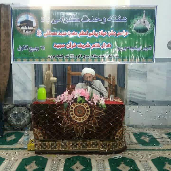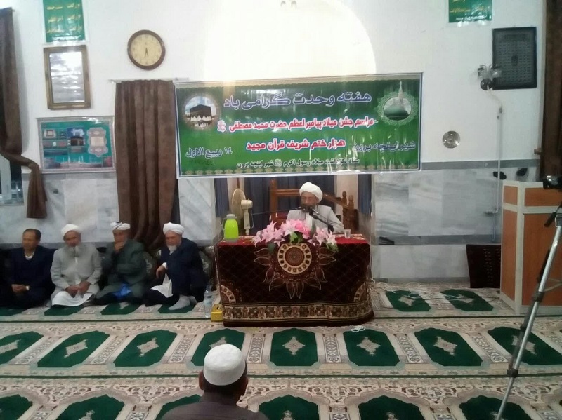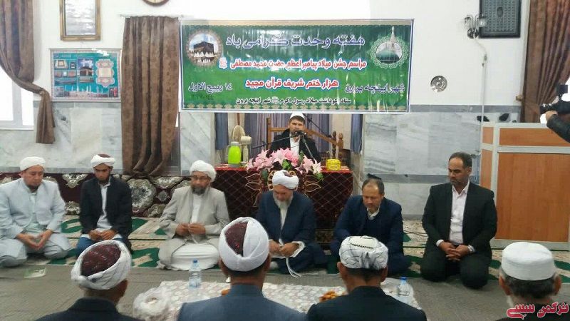 ترکمن سسی- جشن میلاد پیامبر اعظم حضرت محمد مصطفی(ص) همزمان با هفته وحدت و با نثار هزار ختم شریف قرآن کریم و مولود خوانی میلاد نبی مکرم اسلام(ص) روز پنج شنبه 14 ربیع الاول با حضور اقشار مردمی در مصلی نماز جمعه شهر مرزی اینچه برون برگزار شد.