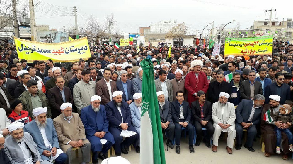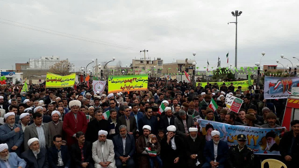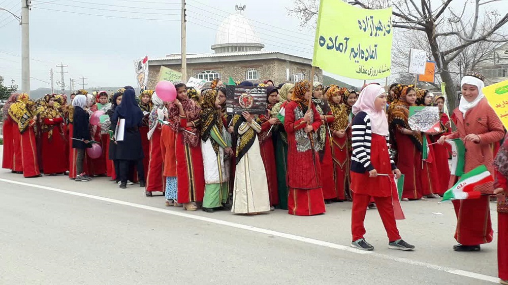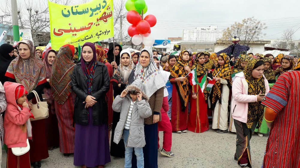 ترکمن سسی - اقشار مختلف مردم شریف شهرستان مرزی مراوه تپه در شرق استان گلستان همگام با مردم تمامی شهرهای استان ، صبح امروز در راهپیمایی 22 بهمن در چهلمین سال پیروزی انقلاب اسلامی شرکت نمودند.