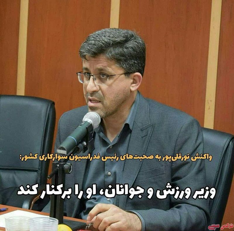 ترکمن سسی - رامین نورقلیپور ، نماینده مردم غرب استان گلستان به سخنان اخیر رئیس فدراسیون سوارکاری کشور واکنش تندی نشان داد و اظهار کرد : وزیر ورزش و جوانان، او را برکنار کند.