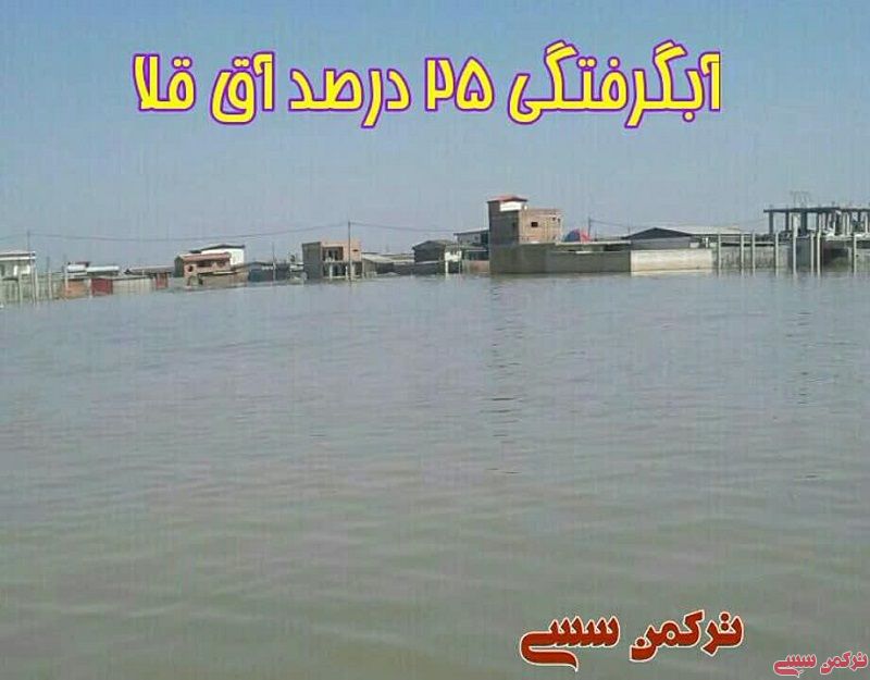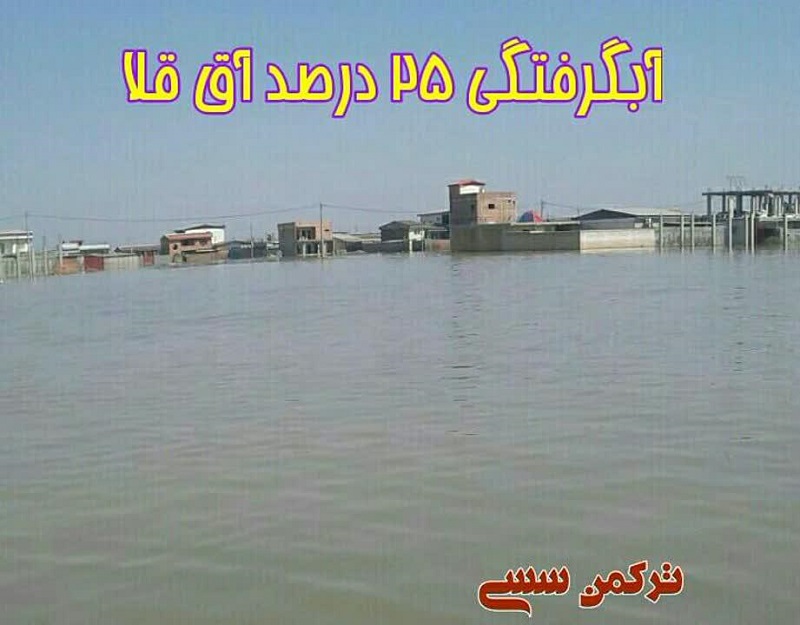 به گزارش پایگاه خبری ترکمن سسی ، ضمیر فرماندار شهرستان آق قلا در گفتگو با خبرنگاران اظهار کرد : به علت شکسته شدن چند نقطه از سیل بند خاکی اطراف شهر باعث ورود آب به محلات و معابر شهر آق قلا شد و حدود ۲۵ تا ۳۰ درصد شهر دچار آب گرفتگی شده است.