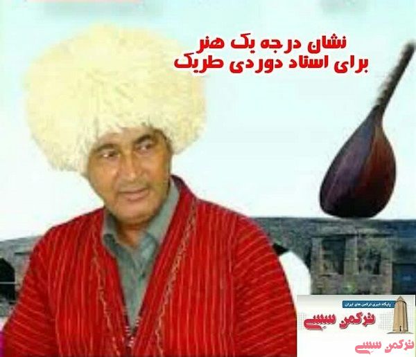 ترکمن سسی - استاد دوردی طریک هنرمند پیشکسوت موسیقی سنتی ترکمنی و از بخشی های مشهور دهه های پیشین منطقه ترکمن صحرا، نشان درجه یک هنری دریافت کرد.